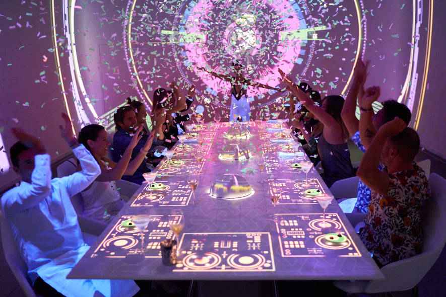Этот ресторан считается одним из самых дорогих и технологичных в мире, где обед для одного гостя обходится в 1,5–2 тыс. евро. Гостей ждет полное погружение: виртуальная реальность, смена декораций, световые и ароматические эффекты. Команда из 25 человек — дизайнеры, инженеры и актеры — создает шоу, которое меняется каждый год. Как отмечается в описании проекта, «эмоциональное путешествие продумано так, чтобы гости могли перенестись и в 40-е годы прошлого века, и в 2050 год».